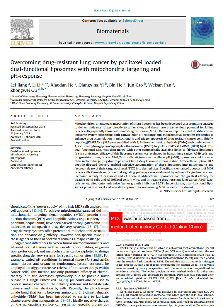 Biomaterials.IF (10.317) Overcoming drug-resistant lung cancer by paclitaxel loa