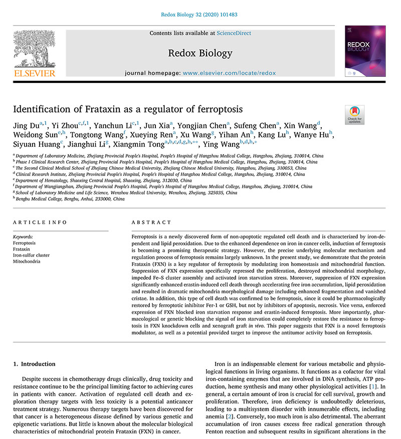 Redox Biology.IF(9.986)Identification of Frataxin as a regulator of ferroptosis