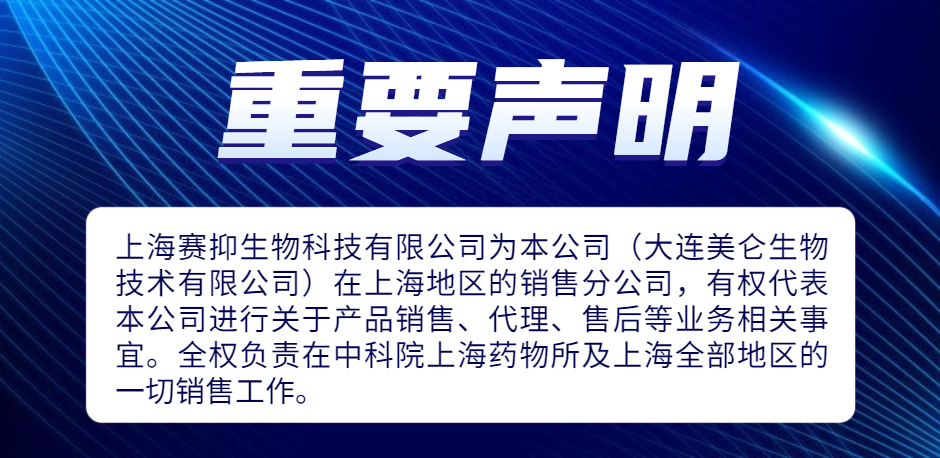 聲明:上海賽抑生物科技有限公司為本公司(大連美侖生物)在上海地區(qū)的銷售分公司