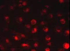 本品配成 5mM 溶液后為深藍(lán)色液體溶液,澄清且無(wú)可見(jiàn)異物; 進(jìn)行熒光染色檢測(cè):工作條件:熒光顯微鏡,C6 細(xì)胞,400×,工作濃度 5μM。 結(jié)果:經(jīng)細(xì)胞膜熒光染色,在40倍物鏡下可看到清晰紅色熒光。