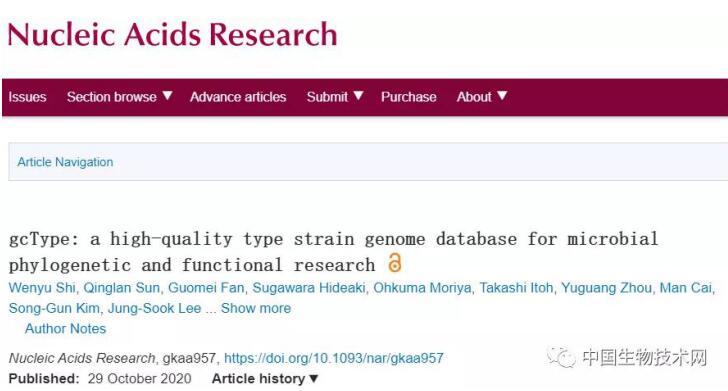 10月29日,《核酸研究(Nucleic AcidsResearch)》在線發(fā)表了國家微生物科學(xué)數(shù)據(jù)中心(中國科學(xué)院微生物研究所微生物資源與大數(shù)據(jù)中心、世界微生物數(shù)據(jù)中心)團隊關(guān)于全球模式微生物基因組數(shù)據(jù)庫gcType的文章。gcType是由我國牽頭的全球模式微生物基因組測序計劃的重要成果。