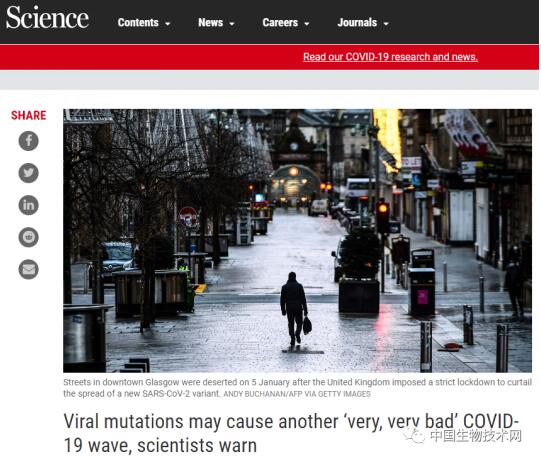 北京時間1月6日,《Science》頭條新聞發(fā)表名為“Viral mutations may cause another ‘very, very bad’ COVID-19 wave, scientists warn”的文章。