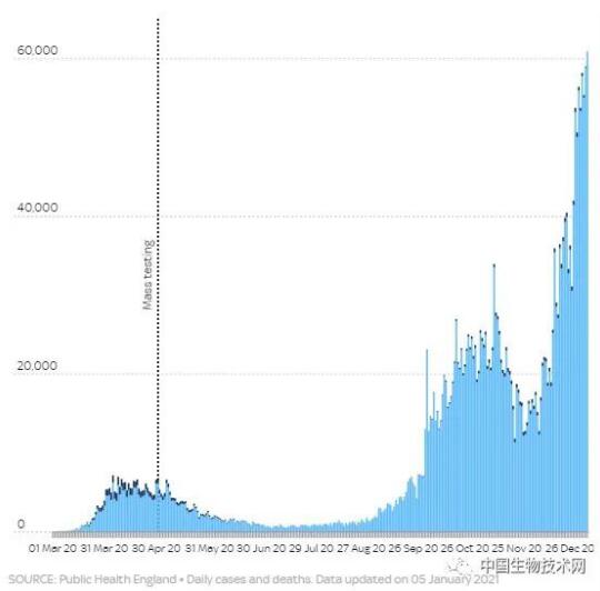 當?shù)貢r間1月5日,據(jù)英國政府網(wǎng)站公布的數(shù)據(jù)顯示,在過去24小時內(nèi),英國新增新冠肺炎確診病例60916例,較前一日又增加了2132例,系首次突破60000例,再次刷新大流行暴發(fā)以來的最高紀錄,并已連續(xù)八天超過50000例;新增相關(guān)死亡830例,較前一日翻了一番。