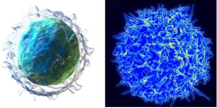 圖:B細(xì)胞3D透視圖和人類T細(xì)胞掃描電鏡圖